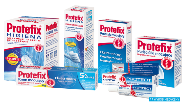 Protefix to pierwsze* kremy mocujące do protez zębowych wprowadzone na polski rynek. Marka nieustannie rozwija swoje portfolio, aby odpowiadać na rosnące potrzeby konsumentów z protezami zębowymi.